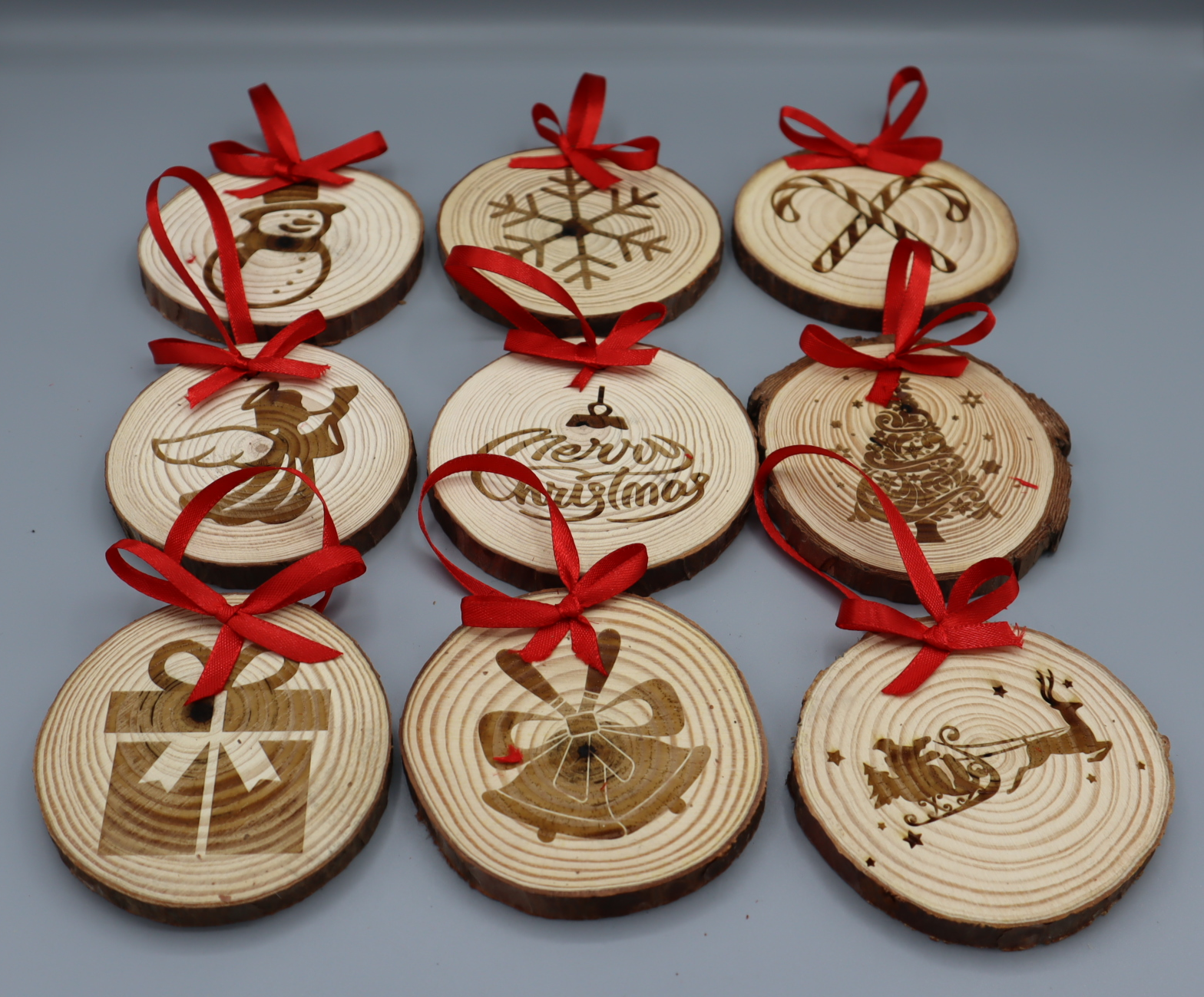 Imagine the warm glow of your Christmas tree adorned with these charming decorations, each one telling its own story. From whimsical snowflakes to classic stars, every piece is carefully designed to capture the spirit of the season. The natural wood grain adds a unique touch, ensuring that no two decorations are exactly alike.
